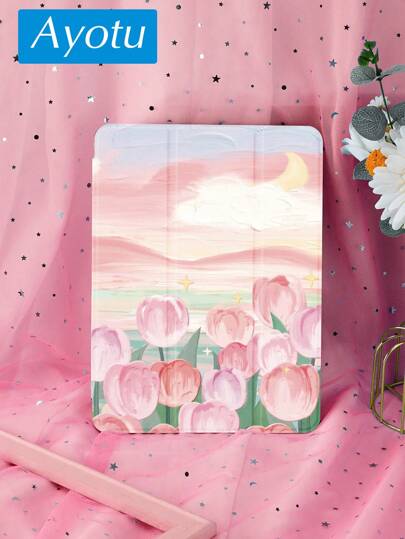 Ayotu 1pc Flower Case,With Pen Holder,Supports Automatic Sleep/Wake Lid,With Anti-Fall FunctionWith IPad - Multicolor - View 1