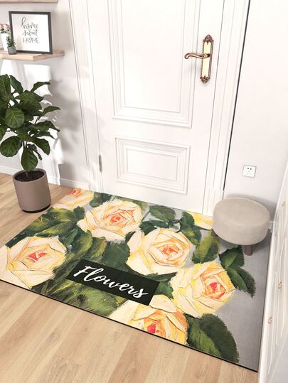 1pc Flower & Letter Graphic Door Mat - Multicolor - View 1