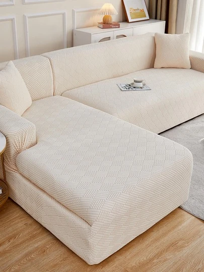 1pc Geometric Jacquard Stretchy Sofa Slipcover - Beige - View 1