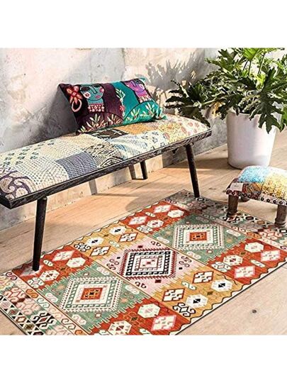 1pc Geometric Patterned Orange Carpet Suitable For Bedroom, Living Room, Kitchen Floor. Non-slip And Washable - Multicolor - View 4
