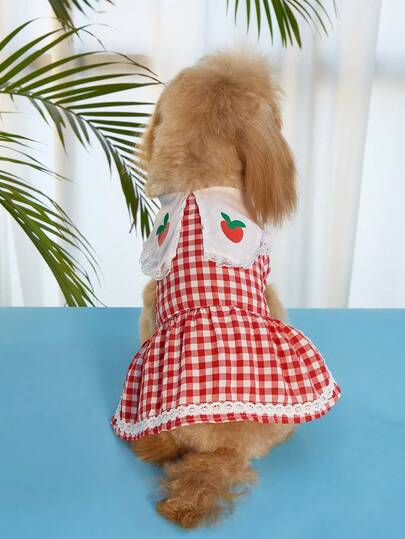 1pc Gingham Pattern Pet Dress, Red Cute Polyester Pet Dress, For Pets - Red - View 1