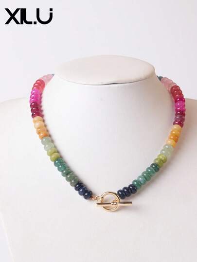 1pc Glass Beads Rainbow Beryl Color Necklace - Multicolor - View 9