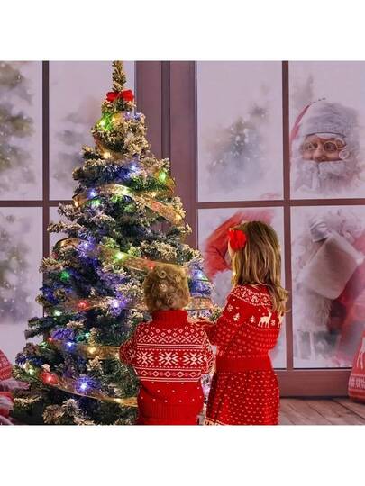 1pc Gold Ribbon LED Copper Wire Lights, Colorful, Christmas Tree Decor, Holiday Decorative Ribbon - Gold Ribbon Color - View 2