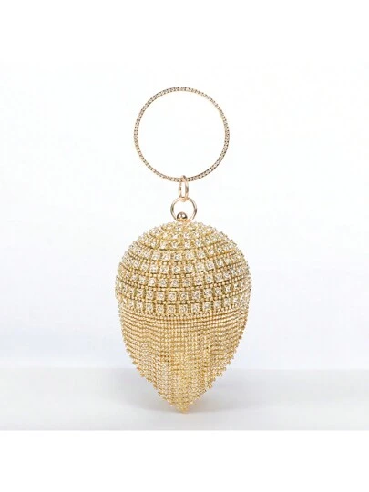 1pc Gold Sparkly Metallic Rhinestone Decor Ball Shaped Evening Bag With Tassel Decoration For Parties Valentines - Gold - View 1