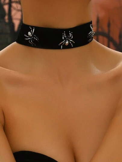 1pc Gothic Black Velvet Spider Embellished Choker Necklace - Black - View 1
