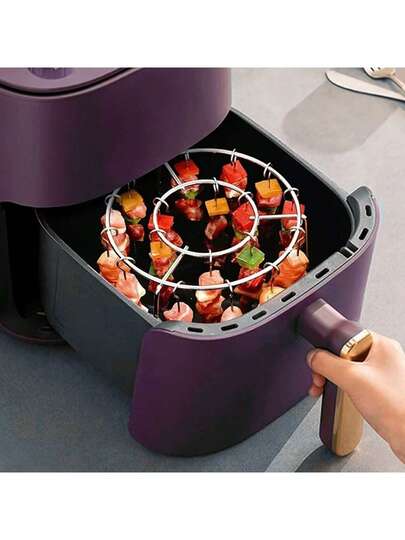 1pc Grill Rack, Stainless Steel Household Barbecue Skewer Holder, Multi-Function Double-Layer Air Fryer Rack - Multicolor - View 1