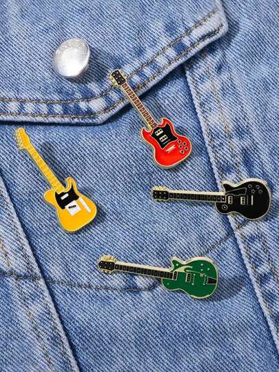 1pc Guitar-Shaped Geometric Pattern Zinc Alloy Brooch, Music & Instrument Accessory - A - View 4