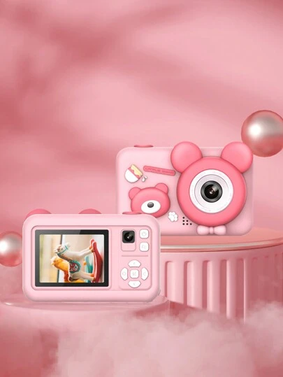 1pc HD Dual Photo Digital Camera Student Mini Cartoon Camera Comes With A Stand As A Gift-Pink - Pink - View 1