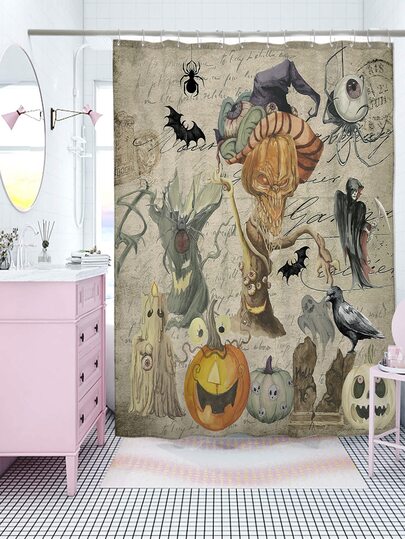 1pc Halloween Wave Monster Digital Print Shower Curtain - Multicolor - View 2