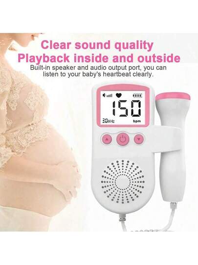 1pc Handheld Fetal Doppler Ultrasound Monitor, Portable Pregnancy Fetal Heart Rate Monitor, Home Fetal Heart Monitor - Pink - View 1
