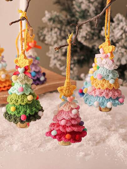 1pc Handmade Crochet Christmas Tree Ornament, Christmas Decoration Car Hanging Accessory, Creative Knitted Gift - Multicolor - View 1