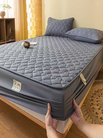 1pc Heart Quilted Fitted Sheet, Grey Bedspread For Bedroom - Grey - View 1