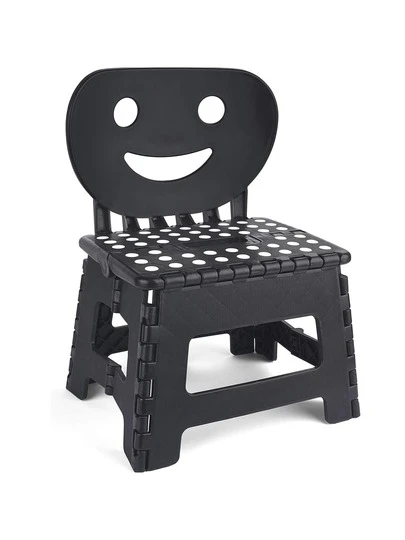 1pc Heavy Duty Step Stool With Backrest Support, Foldable Step Stool For Kids And Adults, Suitable For Outdoor/indoor Kitchen And Bathroom Use - Black - View 1