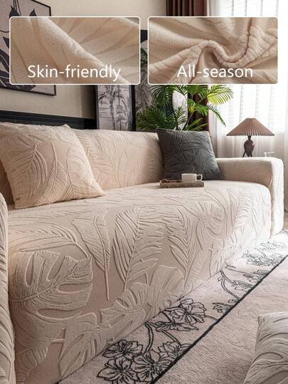 1pc High Elastic Solid Color Plush Fabric Stretch Sofa Cover, All Inclusive Anti-Scratch Anti-Slip Washable Couch Slipcover For 1/2/3/4/5 Seat Sofa In Living Room - Beige - View 1