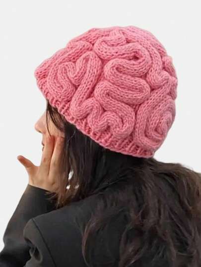 1pc Horror Spoof Brain Hat, Hand-Knitted Unique Brain Cap Halloween Gift - Knitted Hat - View 1