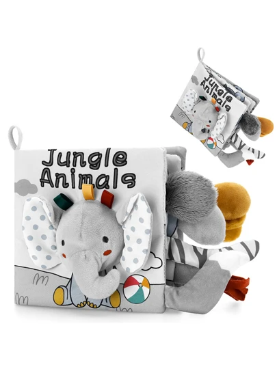 1pc Infant Baby Elephant Cloth Book, Black White Gray, Unrippable, Chewable, 3D Tail, Visual Stimulation, Crinkle Paper, Learning & Educational Toy, Newborn Gift, Random Color - White - View 1