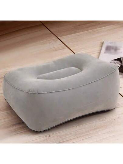 1pc Inflatable Flannelette Footrest, Portable Inflatable Foot Stool For Living Room, Travel, Outdoor Use - Grey - View 1