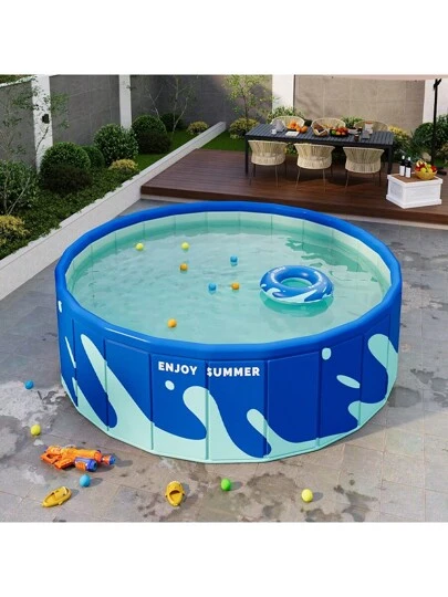 1pc Inflatable-Free Thickened Folding Round Swimming Pool, Outdoor Large Pool With Foldable Frame, Home Use - Diameter 1.2 Meters - View 1