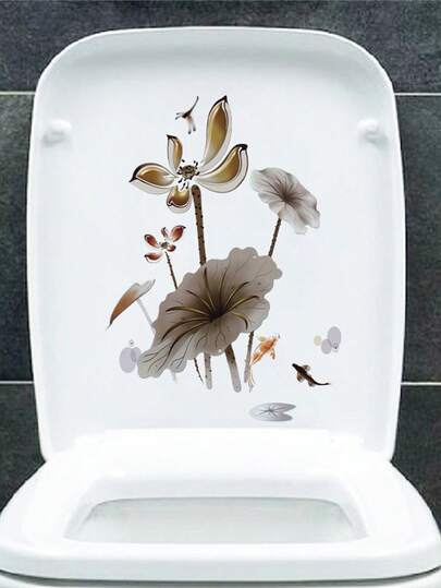 1pc Ink-Style Lotus Carp Fish Toilet Lid Sticker And Wall Decal Home Decor Pvc Waterproof Sticker - Multicolor - View 1