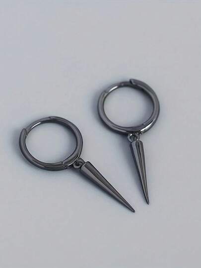 1pc Ins Style Black Spike Shaped Dangle Earring For Men, Personalized Daily Ear Accessory - Black - View 1