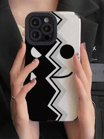 1pc Interesting Black & White Blocked Face Emoji Phone Case Compatible With Iphone - Multicolor - View 1