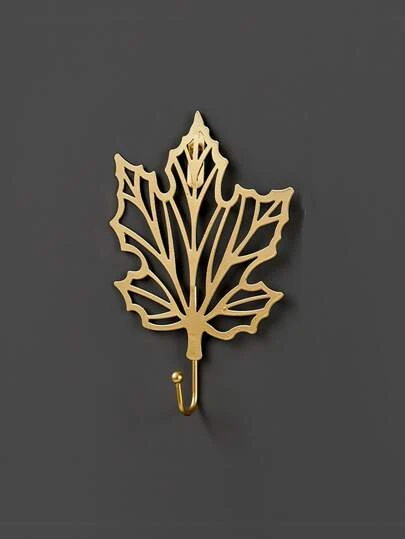 1pc Iron Self-adhesive Hook, Leaf Design Golden Wall Hook For Home - Gold - View 1