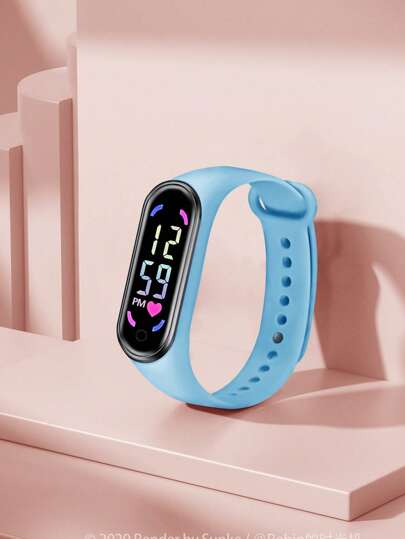 1pc Kids TPU Strap Sporty Oval Dial Digital Watch For Daily Life - Baby Blue - View 1