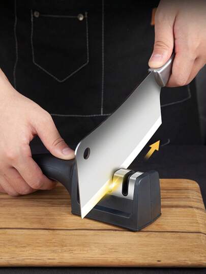 1pc Kitchen Knife Sharpener, Portable Three-stage Knife Sharpener - Black - View 1