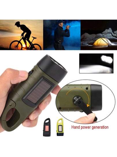 1pc LED Flashlight Hand Crank Solar Powered Rechargeable Survival Gear Self Powered Charging Torch Dynamo For Fishing Boating Hiking - Multicolor - View 1