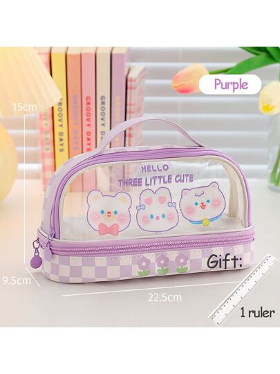 1pc Large Capacity Cute Light Purple Pencil Case Transparent Pen Bag Portable Hand-held Stationery Case For Student - Mauve Purple - View 1