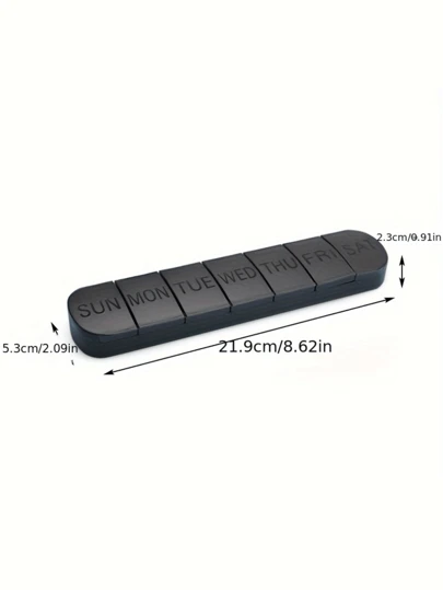 1pc Large Compact 7 Day Weekly Pill Organizer, Portable Travel Friendly Quick Fill Medicine Case Box With Large Compartment For Vitamins, Fish Oil, White, Black - Multicolor - View 9