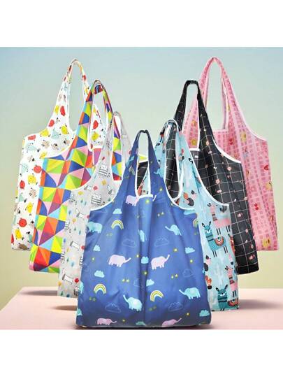 1pc Large Foldable Waterproof Shopping Tote Bag - Durable Flower Cloth Square Design, Portable, Reusable, And Collapsible - Perfect For Grocery, Travel, And Daily Use - Multicolor - View 17