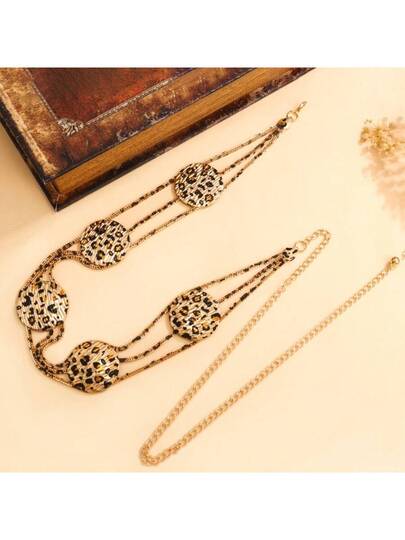 1pc Leopard Print Metal Waist Belt, Decorative Waist Chain, Versatile Accessory For Sweaters, Dresses, Suits, Fashionable - Gold - View 1