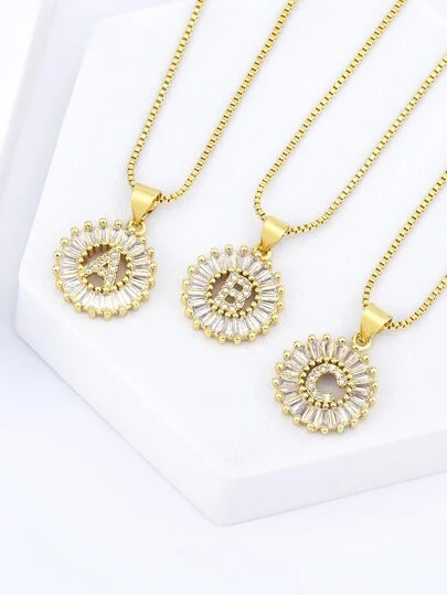 1pc Letter Detail Cubic Zirconia Round Charm Necklace - Yellow Gold - View 1