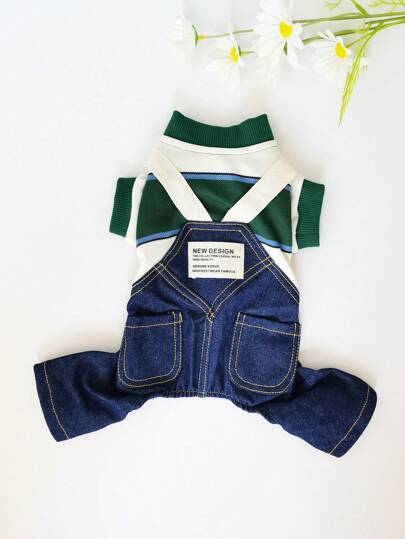 1pc Letter Graphic Pet Jumpsuit - Green - View 4