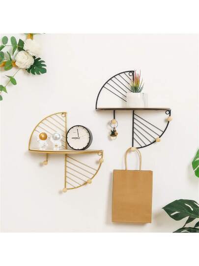 1pc Light Luxury Style Wall Mounted Metal Storage Rack, Creative Fan-shaped Living Room Decoration Shelf For Home Organization - Black - View 1