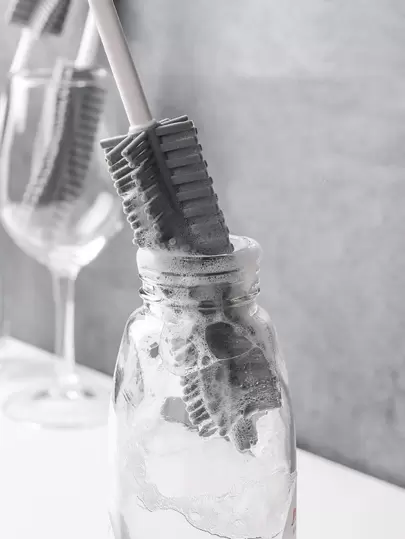 1pc Long Handle Bottle Brush, Nordic PUR Cup Cleaning Brush For Household - Grey - View 7