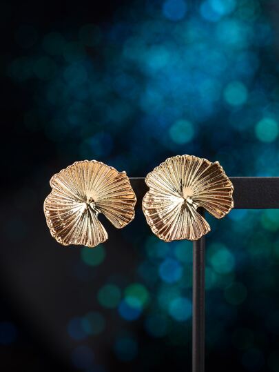 1pc Lotus Leaf Stud Earrings Copper Jewelry - Yellow Gold - View 1