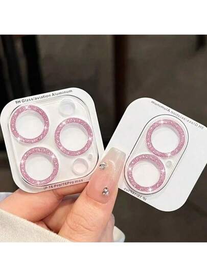 1pc Luxury Glitter Camera Lens Protector Film, Compatible With IPhone 16 Pro Max Plus 15 14 5G, Apple Fashionable Dopamine Candy Color Glitter Lens Film, Suitable For Daily, Office, Home Phone Camera Protection, Waterproof, Shockproof, Anti-Fall, Anti-Scratch, Anti-Fingerprint, Full Coverage - Pink - View 1