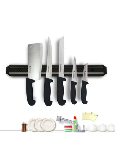 1pc Magnet Knife Storage Rack, Modern Punch-free Wall Mounted Knife Holder For Kitchen - Black - View 1