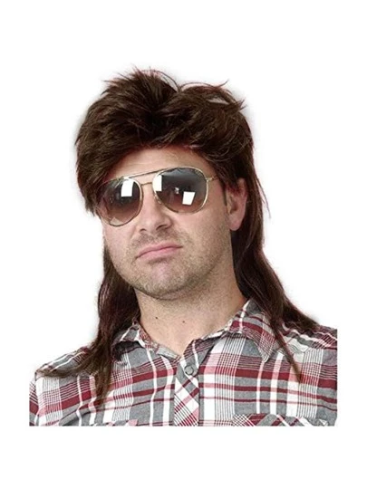 1pc Men's Wig 80s Costume Party Accessory Role Play Fancy Dress Wig - Coffee Brown - View 1