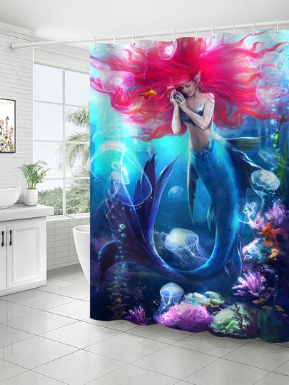 1pc Mermaid Shower Curtain - Modern Style Polyester Printed Waterproof Bathroom Curtain With Anti-mold Design - Multicolor - View 1