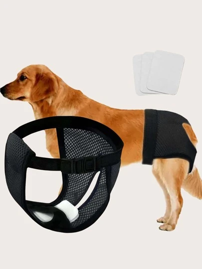 1pc Breathable Dog Physiological Pants With 3pcs Pads, Black - Black - View 1