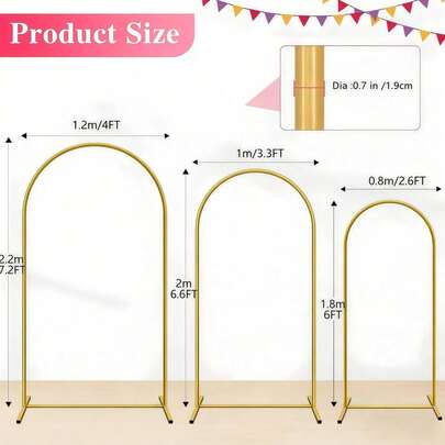 1pc Metal Arch Backdrop Stand, Wedding Arch Frame, Available In 5ft, 6ft, 6.6ft, 7.2ft, Suitable For Birthday Party, Graduation Ceremony Decoration (Arch Frame Only) - Gold - View 7