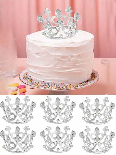 1pc Mini Pearl Crown Cake Topper, Cake Decoration, Birthday Cake Topper, Floral Pick, Birthday, Wedding, Party And Shower Decor - 1 Silver Crowns - View 8