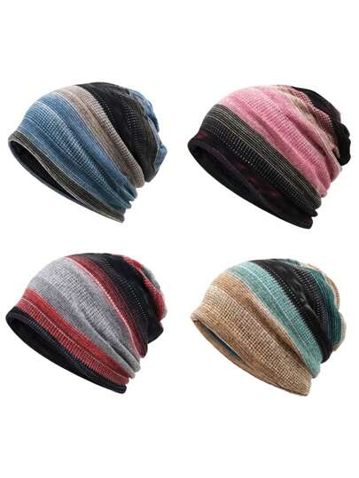 1pc Minimalist Casual Striped Jacquard Knit Beanie Hat, Warm Winter Fabric, Versatile Fit For Outdoor Activities And Daily Use, Multi-Color Options Fall Outfit - Multicolor - View 4