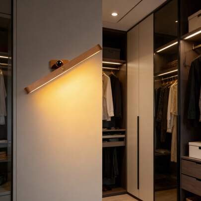 1pc Minimalist Maple Color Magnetic Adsorption Wall Lamp Without Drilling, Suitable For Mirror, Bedside, Entryway - Beech Color - View 11