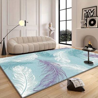 1 Piece Of Modern Minimalist Style Light Blue, Purple And White Feather Pattern Carpet.The Velvet Fabric Weighs About 850 Grams And Is About 0.6 Cm Thick.The Carpet Is Wear-Resistant/Non-Slip/Easy To Clean.Available In A Variety Of Sizes.Suitable For Kitchen/Living Room/Dining Room/Bedroom/Balcony/Bathroom/Study And Other Scenes.It Is The Perfect Choice For Home Decoration. - Multicolor - View 1
