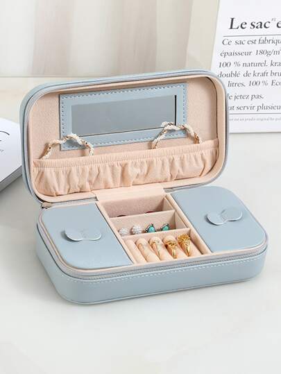 1pc Multi-grid Jewelry Storage Box, Minimalist Dusty Blue Rectangle Portable Jewelry Storage Case For Necklace, Earring, Ring - Dusty Blue - View 1