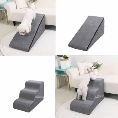 1pc Multifunctional Dog Stairs, Ramp And Stairs 2-In-1 Design, 25D High-Density Memory Foam For Strong Support, Suitable For Small/Medium Pets, Curved Shape, Non-Slip Surface, Removable & Washable Cover, Ideal For Young, Elderly Or Injured Pets - Light Grey - View 1